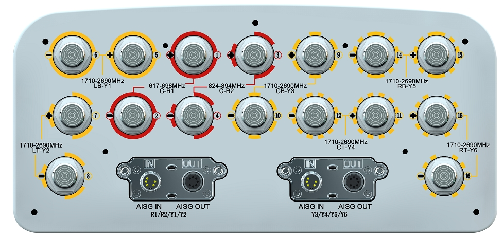 This sector antenna model features two ports covering 617-698MHz and two ports covering 824-894MHz, with diplexed cross-polarized arrays in the high band (671-894MHz). This configuration supports independent tilt operation across frequency bands, enabling precise optimization of coverage and capacity. The arrangement allows network operators to address specific coverage requirements while maintaining signal quality and performance standards. These technical characteristics make this sector antenna suitable for complex network environments requiring multi-band operation.
