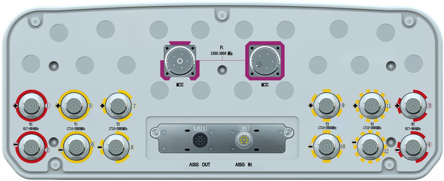 The T2008L6R022 is a state-of-the-art 4G antenna designed to support a wide range of applications. With impressive specifications, this antenna is optimized for performance across various frequency bands, ensuring seamless communication in diverse environments. The coupling factor between the calibration port and each antenna port is -26±2 dB, which allows for effective signal transmission while minimizing losses.